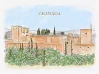 Koop de illustratie Granada Spanje van Aliya Putrus als print op canvas, aluminium dibond, (ingelijste) fotoprint, behang en ArtFrame. Voor jou op maat geprint in Fine-Art kwaliteit.