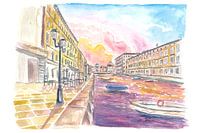 Willemstad Curacao Koningin Emmabrug Uitzicht met zonMarkus Bleichner Verliefd op een prachtige Caribische zonsondergang in aquareltechniekMarkus Bleichner