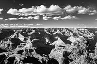 Een zwart-wit foto gemaakt vanaf de South Rim in Grand Canyon National Park in het noorden van de staat Arizona, in de Verenigde Staten.