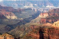 De eerste zonnestralen verlichten delen van de Grand Canyon in de Verenigde Staten, waardoor een sfeervol en haast zacht beeld van dit beroemde Amerikaanse nationaal park ontstaat.
