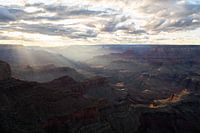 Grand Canyon tijdens zonsondergang. Mooie zonnestralen die schijnen in de Grand Canyon. Ik heb grain (korrels) toegevoegd aan de foto.