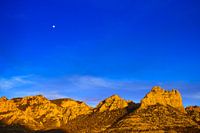 Spectaculair licht tijdens een naderende zonsondergang in de omgeving van de Grand Canyon, Arizona. De maan is goed zichtbaar.