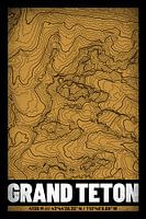 De Grand Teton in de Rocky Mountains als topografische kaart. Grunge-ontwerpkaart met hoogtelijnen. Stijlvolle print voor wandelaars, klimmers en outdoorfans - ook als cadeau-idee!