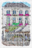 Digitaal aquarel van grand café "Chagall" in Roosendaal (Brabant).