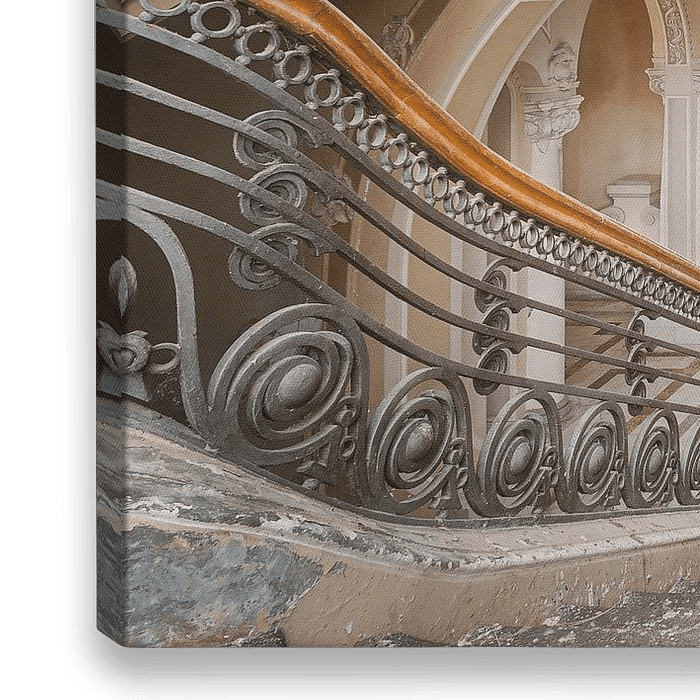 Dit is een foto van de entree hal en trap in het verlaten casino van Constanta in Roemenië. De architectuur van deze plek is ongelofelijk mooi en de geschiedenis zeer interessant. Lange tijd geleden vond er een koninklijk huwelijk plaats.