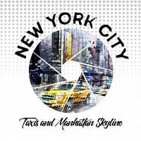 Ein modernes und dekoratives Werk mit Schrift. Das Motiv wurde mit geometrischen Elementen unterbrochen. Die Collage besteht aus einer nächtlichen Ansicht der Brooklyn Bridge und der beleuchteten Skyline von Manhattan sowie dem Verkehr am Times Square. Eine dekorative und moderne Umsetzung der Szene mit geometrischen Formen.