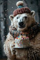 Over ‘Grappige ijsbeer met verjaardagstaart in retro disco stijl’ van Poster Art Shop