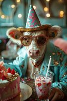 Vier de verjaardag in jaren 60 discokleding met een leuk verklede koe en confetti.