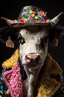 Vier de verjaardag in jaren 60 discokleding met een leuk verklede koe en confetti.