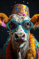 Vier de verjaardag in jaren 60 discokleding met een leuk verklede koe en confetti.