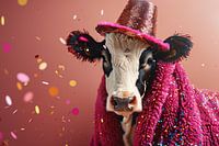 Vier de verjaardag in jaren 60 discokleding met een leuk verklede koe en confetti.