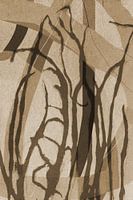 Moderne botanische illustratie in retrostijl. Monotype van een echte plant. Warme aardetinten. Pastel trendy kleuren, organische vormen en lijnen, delicate texturen. Wabi-sabi, Landelijk, Shabby chic, Romantisch, Scandinavisch, Retro, Basic, Design interieurstijl.