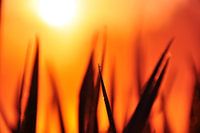 Kleurrijke foto van grasprietjes in de opkomende zon.