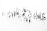 de structuren van het gras in het water van de vijver gefotografeerd in High-key geeft een mooi zwart-wit resultaat. De zwart wit uitvoering geeft nog meer dimensie. Weerspiegeling in het water geeft een mooie meerwaarden. Het bos in hof ter Laken is leuk om te wandelen.