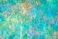 Een fotobewerking van 2 foto's doorelkaar heen. Ik heb het bedoeld als behang maar de felle kleuren zijn ook zeer decoratief als foto. Elke sombere muur wordt hiermee opgevrolijkt. Bloeiende grashalmen uitgevoerd in blauw en groentinten.