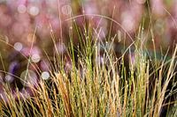 Waterdruppels op de halmen van dit siergras gefotografeerd met beperkte scherptediepte