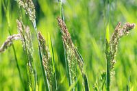 Prachtige close up macro opname van verschillende soorten groene grassen in de tuin in de lente met mooi licht