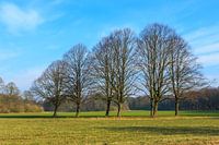 Landschapsfoto van een groep bomen op een groot grasveld in het Amsterdamse Bos.