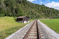 Tavanasa Graubünden Switzerland Meter gauge tracks of the Rhätische bahn on the Reichenau-Tamins–Disentis/Mustér railway. Railway, rhatisch, rhaetian, tracks,