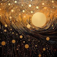 Een kleurrijk digitaal schilderij een gouden ster die door zijn zijn gravitational pull anderen hemellichamen aantrekt. Het werk geeft een warme en dromerige uitstraling van uw interieur!
