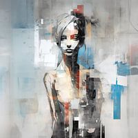 Een abstract portret van een vrouw, grijze en blauwe tinten. Stencil Art.