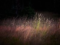 De warme stralen van de ondergaande zon verlichten het gras op een magische manier.