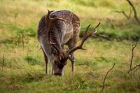 Damhert grazend in de Amsterdamse Waterleidingduinen in de herfst.