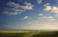 Koeien grazen in de kwelders van de Groninger Waddenkust, terwijl het licht glijdt over het landschap. De Waddenkust is een bijzonder onderdeel van het Groningerlandschap.