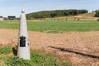 Kanne Belgium Grenspost, Belgian border marker on the Mergelweg in the Jekerdal. In the distance the slopes of the Sint Pietersberg in The Netherlands. grenspaal, crossing, frontier, crossing, national, Limburg,