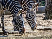 Duo Portret van de Grévy zebra, de grootste en meest bedreigde zebrasoort.
