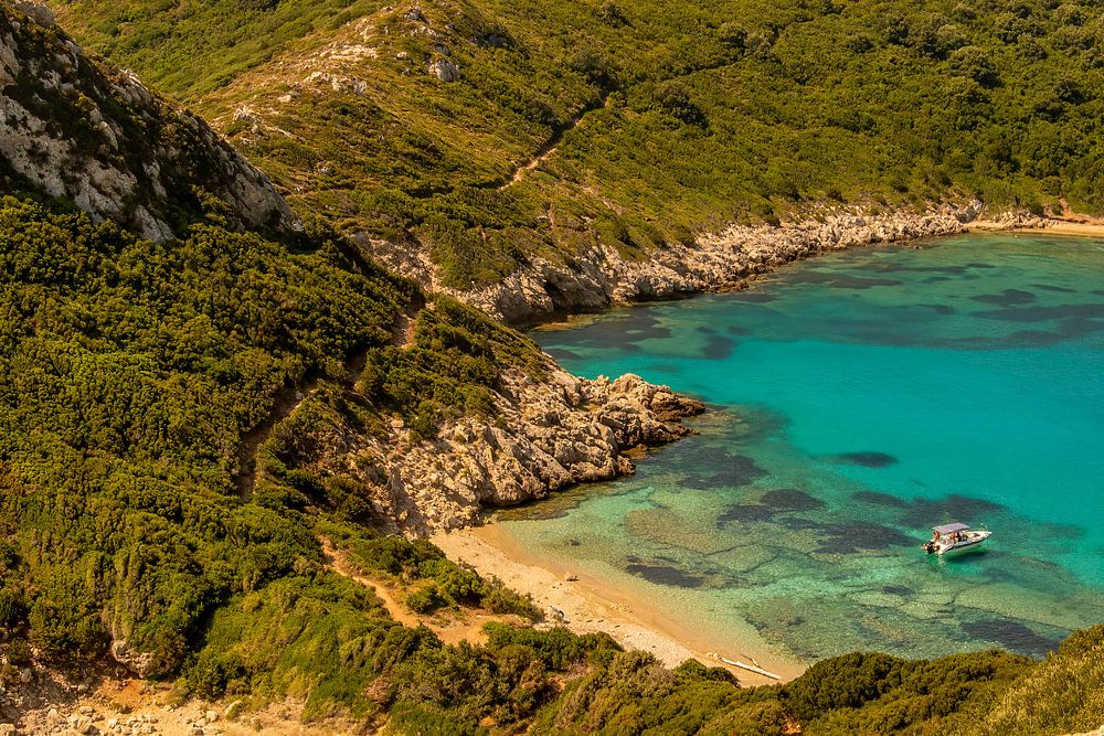 Uitzicht over Porto Timoni Beach, mooi strand in Corfu