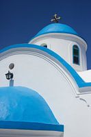 Een kerk op het Griekse eiland Karpathos. Kerken in Griekenland vind je in overvloed. De wit met blauwe kerkjes vind je overal over de eilanden. Dit kleine kerkje met deze prachtige torent boven het water van de zee uit op het mooie eiland Karpathos. Karpathos is een van de vele Griekse eilanden die Griekenland rijk is.