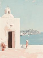 Griekenland in pastelkleuren. Een sfeervol Grieks plaatje. Met dit werk kom je automatisch in zomerse vakantiesferen. Een bijzondere blikvanger voor je interieur!