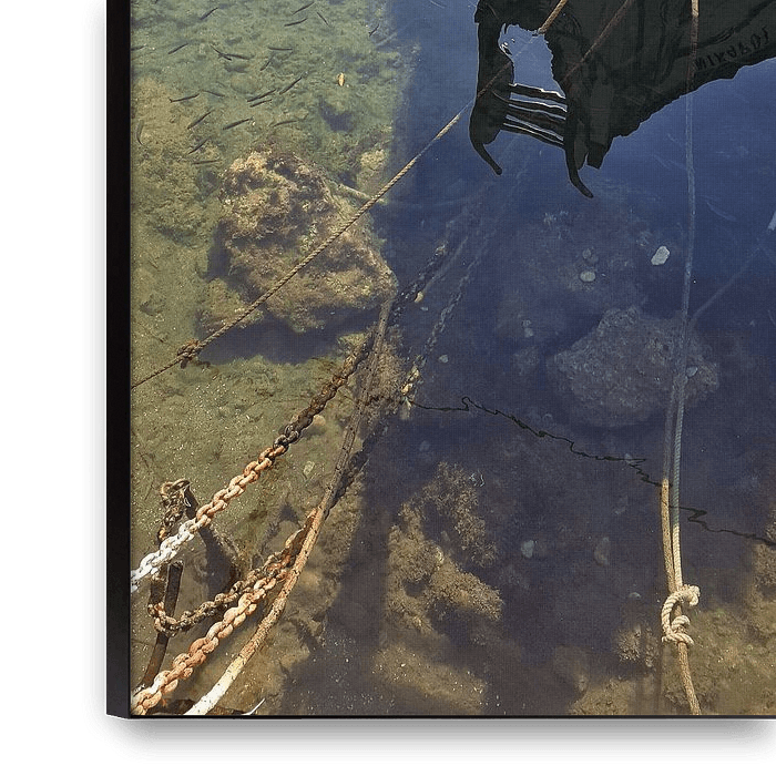 Koop de foto Grieks Vissersbootje in haventje van Caroline Kalkhoven op canvas, aluminium dibond, (ingelijste) fotoprint, behang en ArtFrame, op maat geprint in Fine-Art kwaliteit.