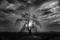 een 5 opname HDR van een kale boom omgezet in zwart-wit voor een meer sinistere sfeer.