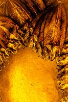 Kruipende dieren in een discussiegroep. Digitaal bewerkt en in gouden kleur gehouden. Eigenlijk zijn het circulaire gezouten vissen die op een markt worden verkocht.