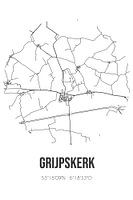 Zwart-witte landkaart, stratenplan of plattegrond van Grijpskerk. Grijpskerk is gelegen in de gemeente Westerkwartier, provincie Groningen. Op de stadskaart zijn alle openbare wegen in Grijpskerk opgenomen. Verder is de kaart voorzien van de coördinaten van het centrum van Grijpskerk.