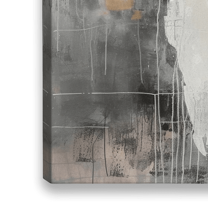 Abstract schilderij in grijs, wit en goud met een verstilde en moderne uitstraling. Dit werk past perfect in Japandi, Wabi-Sabi en Scandinavische interieurs en voegt een gevoel van rust en…