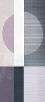 Grijze Cirkel | Cirkel Contrast - Dit abstracte schilderij toont een grote gestileerde cirkel in de kleuren paars en grijs op een achtergrond die is opgedeeld in verschillende texturen en grijstinten.