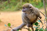 Prachtige close up opname van een Grijze Bamboemaki ofwel Grijze halfmaki in het regenwoud van Madagaskar