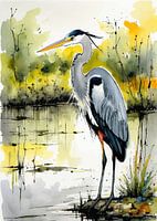 Grijze reiger aquarel van MIROKKU