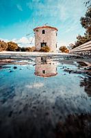 Deze Grisch windmolens bevinden zich op Zakynthos de Sogenant Ionische Eilanden in Potamitis. Historisch bewaard gebleven gereflecteerd in een plas water en dat in het ochtendlicht, geven het beeld een geweldige sfeer. Gewoon een mooie stenen windmolen