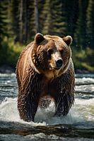 Dit adembenemende ontwerp vangt de essentie van de wildernis met een krachtige grizzlybeer die zich een weg baant door een kabbelende rivier. De detaillering van de vacht en het water benadrukt de kracht en het realisme van deze scène. Ideaal voor natuurliefhebbers die een vleugje avontuur en rust in huis willen brengen. De dynamische compositie maakt het een perfecte keuze voor zowel woon- als kantoorruimtes, waar het een natuurlijk middelpunt vormt.