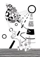 De originele ilustratie is gemaakt met fineliner en acrylmarkers op papier.