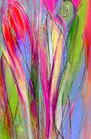 Acrylschilderij met grafische elementen..Abstracte bloemen