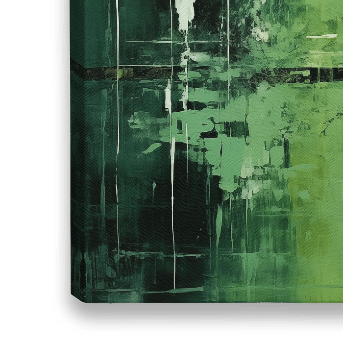 Dit kunstwerk is een uitnodiging om de kracht en diversiteit van de kleur groen te ervaren op een abstract en emotioneel niveau, waarbij de verbeelding de vrije loop krijgt en elke kijker een unieke reis door het doek maakt.