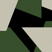 Dit moderne abstracte kunstwerk heeft gedurfde en grafische zwarte, witte en groene vormen, geïnspireerd door de architectuur uit het midden van de eeuw en de Bauhaus-beweging. Met een knipoog naar retro industriële woonstijlen, belichaamt dit stuk eenvoud en minimalisme door het gebruik van moderne vormen en lijnen. De strakke geometrie en sterke graphics maken dit stuk een perfecte toevoeging aan elke ruimte die op zoek is naar een vleugje moderne verfijning.