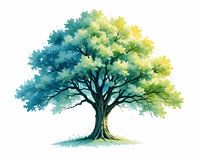 Dit kunstwerk toont een weelderige boom met een vol, levendig groen bladerdak. De verschillende tinten groen, van diepblauw tot felgeel, creëren een gevoel van diepte en textuur en roepen gevoelens op van groei, rust en de vitaliteit van de natuur. De eenvoudige maar elegante compositie richt zich op de schoonheid en kracht van de…
