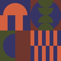 Vormen geïnspireerd op architectuur uit het midden van de eeuw, Bauhaus-beweging in een neutraal retro kleurenpalet.