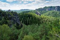 Groen bos en uitzicht op Bastei van Adriana Müller
